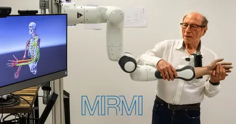 MUCKI is a mechatronic avatar for human upper extremities. It is used to perform mobilization exercises remotely. This is possible using bi-directional force-feedback between task-spaces and assistance of the human digital twin for visualization of muscle activity.