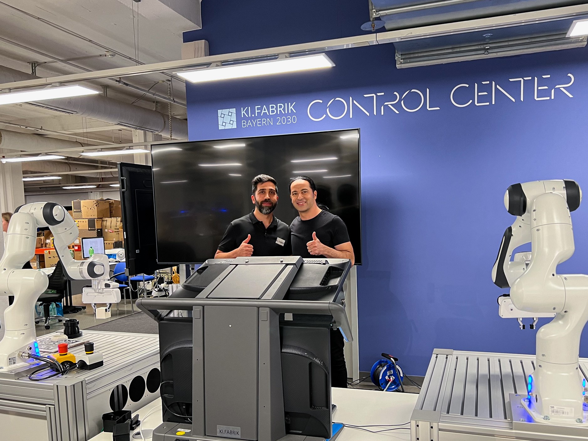 MIRMI researcher Samuel Schneider, demonstrates collective learning in the KI.Fabrik, and Benjamin Felbrich from Olive Robotics, a TUM co-founder, present the latest advances in the field of Artificial Intelligence at BabbelNet with comedian Bülen Ceylan.