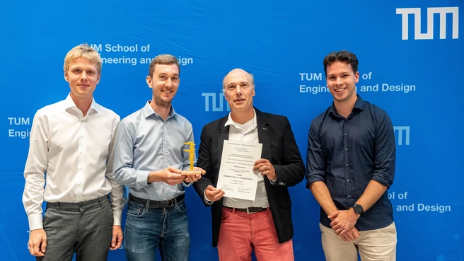 The Mechanical Engineering Student Council has awarded Prof. Daniel Rixen, Moritz Sattler, and Philipp Radecker the ‘Goldene Lehre’ for their lecture on ‘Robot Dynamics’ in the Master's programme for the 2024 summer semester and the 2024/25 winter semester. To this end, mechanical engineering students evaluated their professors' lecture modules in the master's programme. According to the student council, teaching evaluations are conducted for each module every semester, which are completed by students and sent to the respective school. The student council evaluates them according to an internal ‘Golden Formula’ that considers the students' assessments and the number of evaluations.