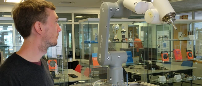 Blended Classroom is the name of the concept developed by researcher Moritz Sattler, Chair of Applied Mechanics at TUM, and the head of the chair, Prof. Daniel Rixen, for the lecture on robot dynamics. Unlike traditional lectures, students can choose whether to follow lectures online or learn on site.