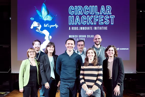The #CircularHackfest, a pivotal initiative by robo.innovate, recently concluded, with a laser focus on tackling 13 challenges in Robotics and AI taking circular economy aspects into account. Johannes Walcher from the Makerspace of UnternehmerTUM, Arne Rost, the Managing Director at TUM Venture Labs Robotics/AI, together with Nicole Ebner and Mayank Garg of robo.innovate greeted over 100 students who eagerly prepared for diverse sustainability tasks.